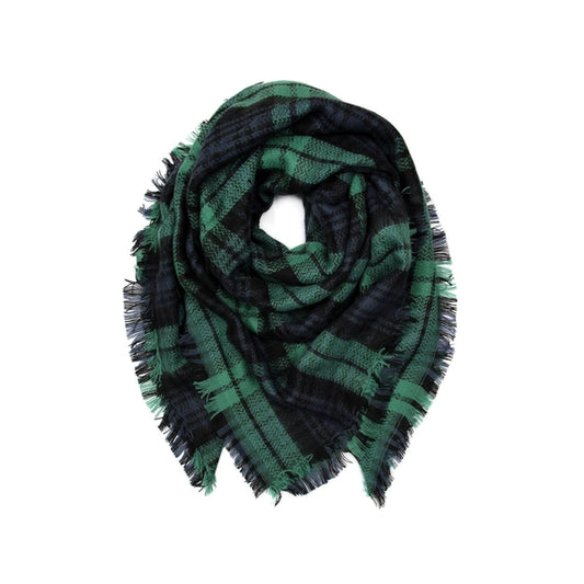 Plaid Fringe Blanket Scarf - GREEN ONE