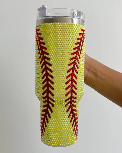 Crystal Softball Yellow/Red "Blinged Out" 40 Oz. Tumbler