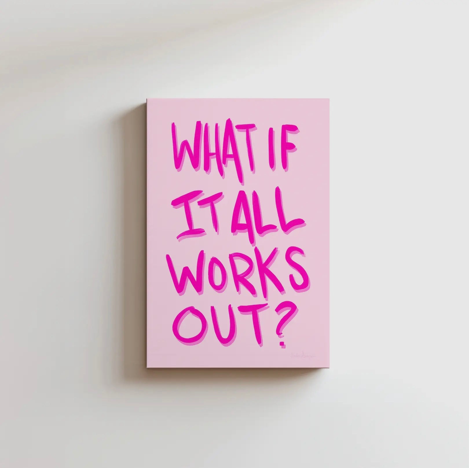 Upgrade your wall décor with our trendy and colorful inspirational poster. With a vibrant backdrop and the motivating words “what if it all works out," this poster will add a touch of positivity to any room. Maximize your space with this statement piece and inspire yourself daily.